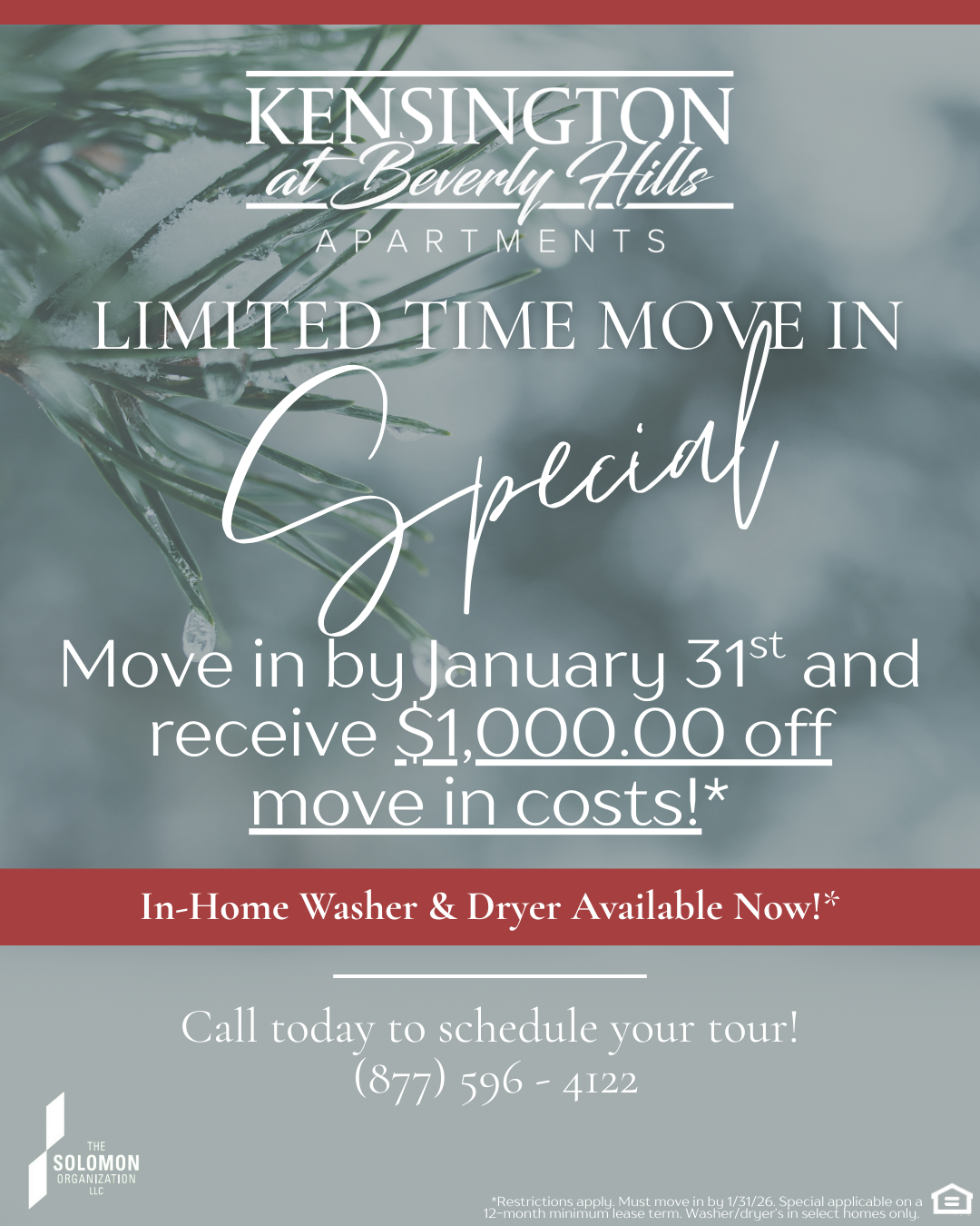 Move in by January 31st to receive $1,000 off move-in costs!*